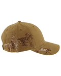 100% brushed cotton twill; Structured front; Pre-curved visor; Hook and Loop backstrap; Detailed embroidered wildlife scene on right side; Dri Duck embossed leather patch left of back vent;